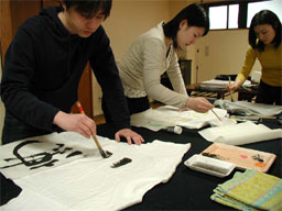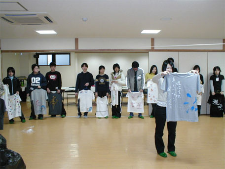 会員同士の交流を目的に、今年も、大阪市福島区の海老江八坂神社で錬成会がおこなわれ、「オリジナルTシャツ」作りをしました。